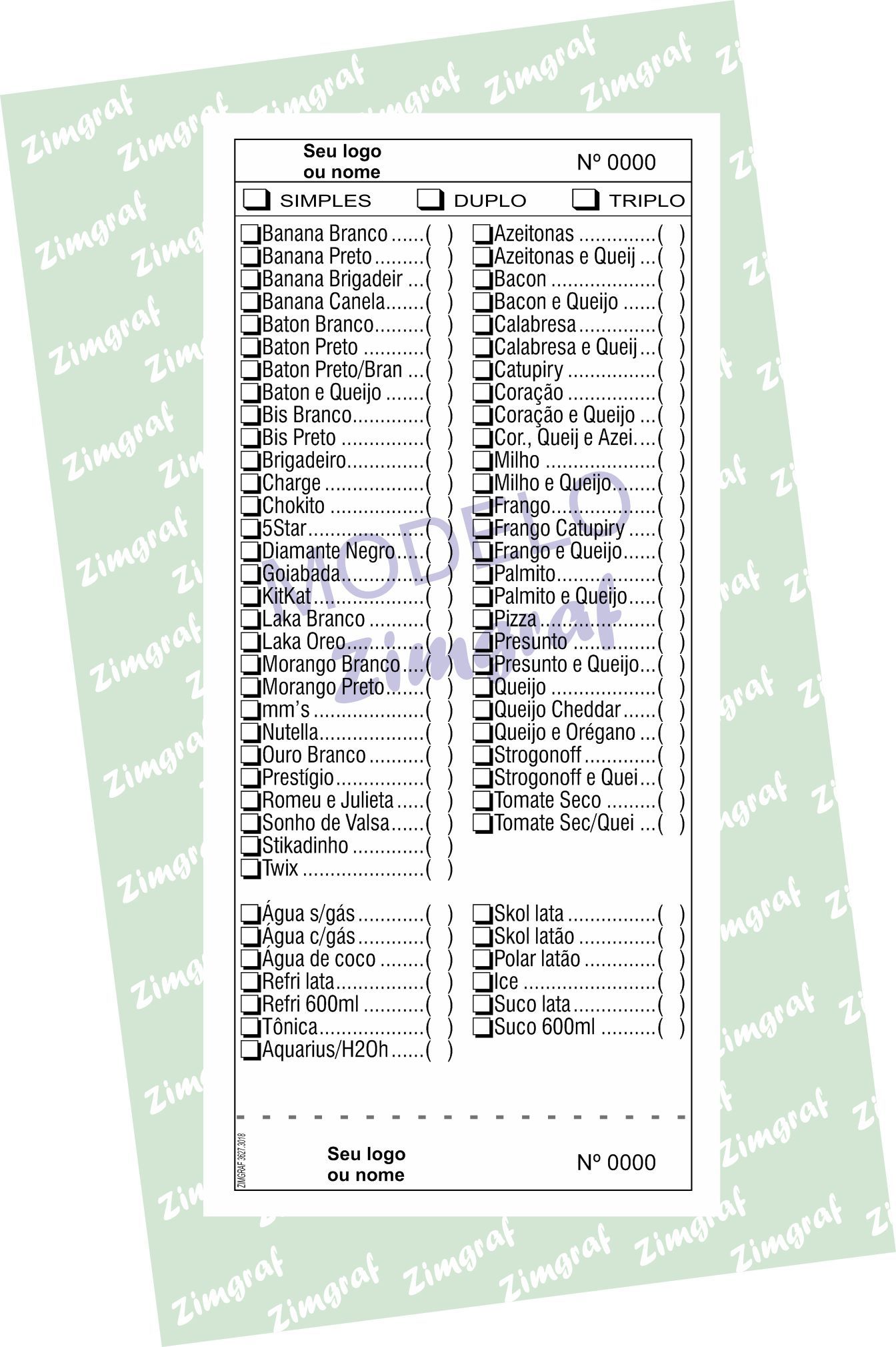 - logotipo e/ou nome para constar na comanda